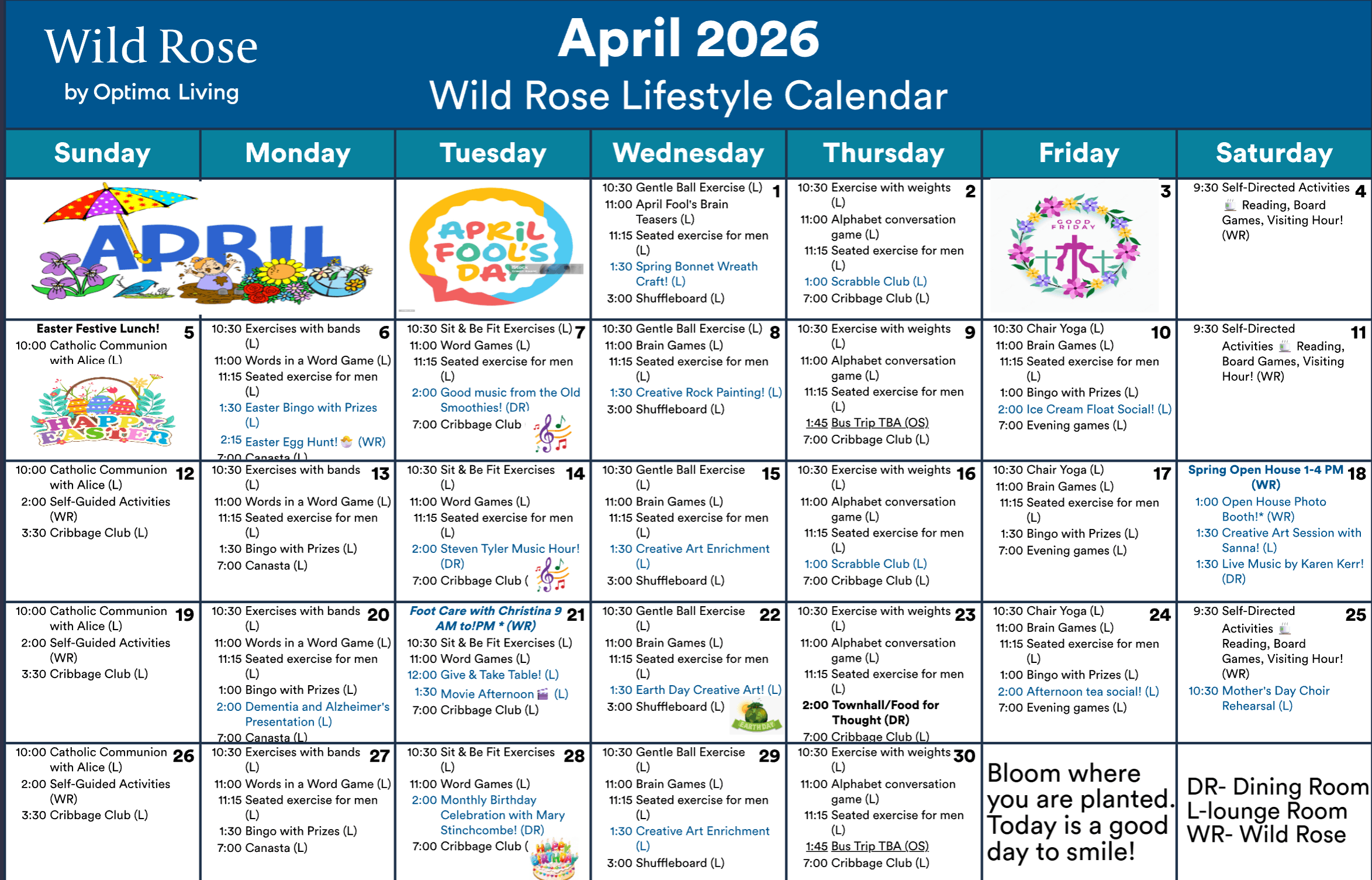 Wild Rose events are subject to change. Not all events are open to the public. Call for details.