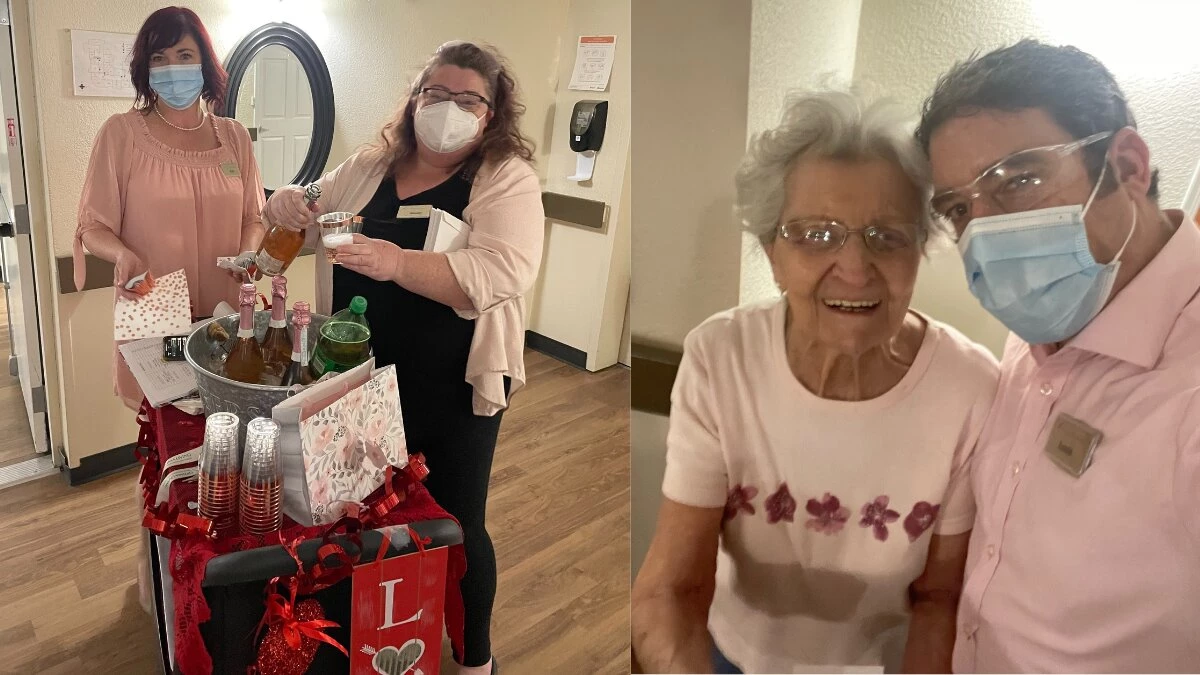 On Valentine’s Day, love was in the air at Wild Rose. Wendy, Louis, and I all dressed in pink, hand-delivered chocolate-covered strawberries, pink champagne, and personalized love notes and letters to all the residents, all while love songs played throughout the halls. There was lots of dancing, laughter, and even a few tears were shed. It was a sweet and special day for us all.